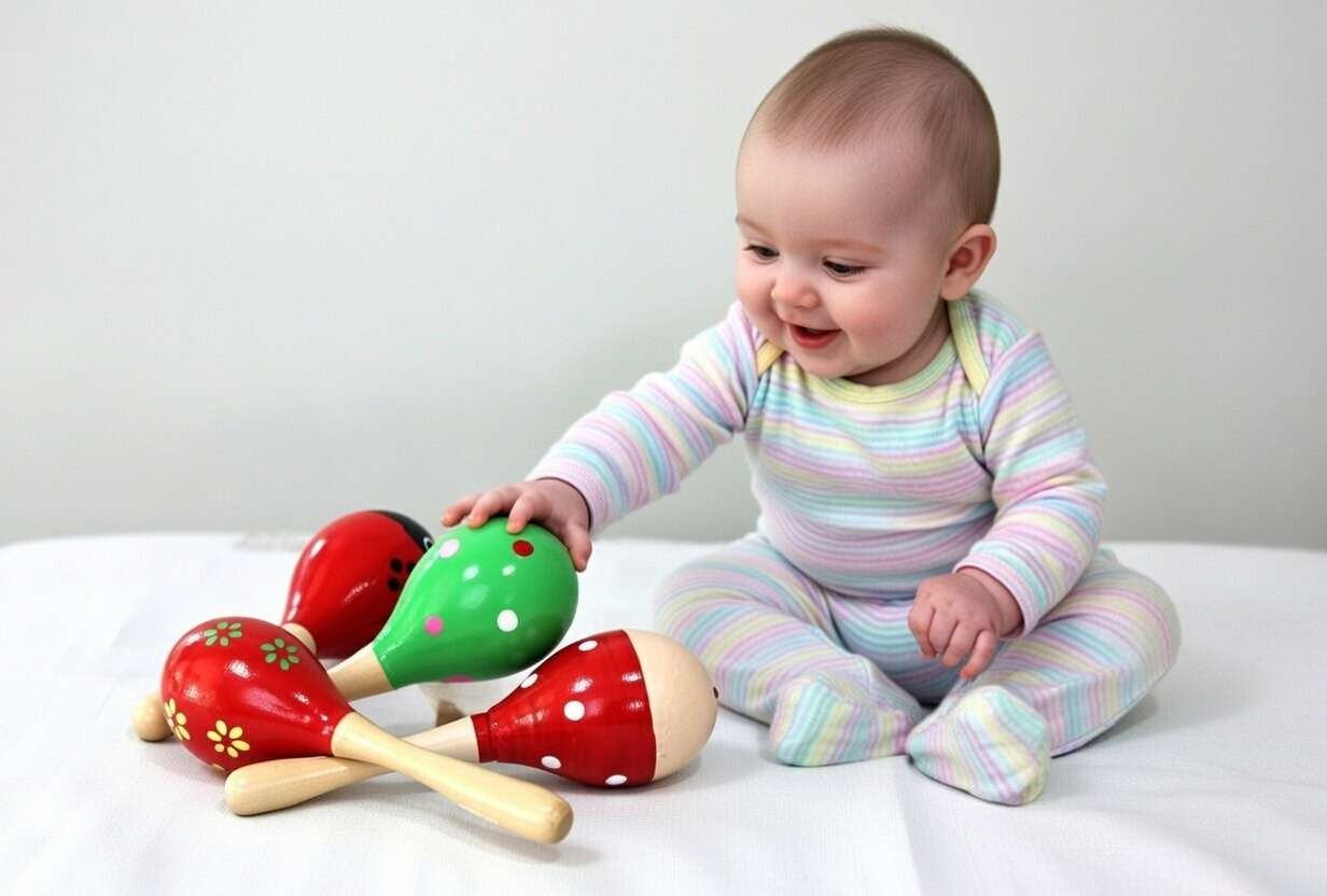 Vibrant, hand-painted wooden maracas designed to introduce little ones to rhythm and sound through playful, eco-friendly music